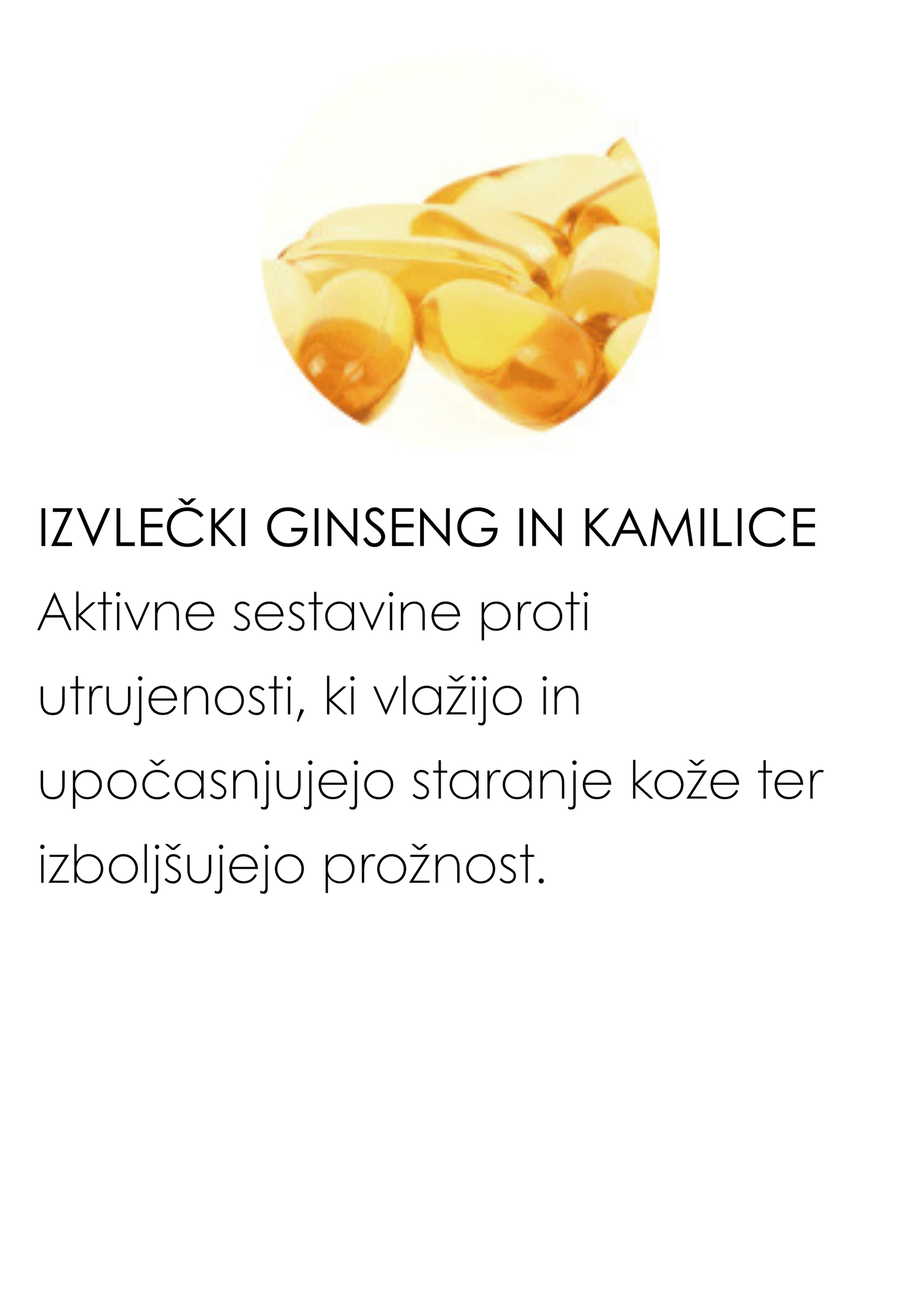 - Ponuja takojšnje in dolgotrajne anti-age učinke, upočasnjuje fotostaranje ter spodbuja nastajanje kolagena in elastina. Poleg tega učinkovito odpravlja znake utrujenosti.